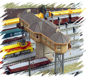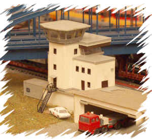 Basis: Vollmer N Brückenstellwerk, Stützen aus Sendemastteilen HO ( Ersteller T.L. )