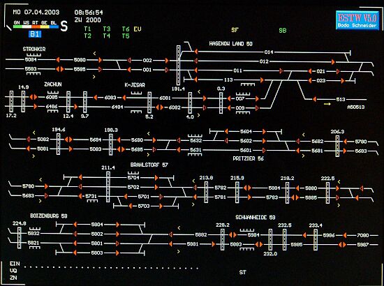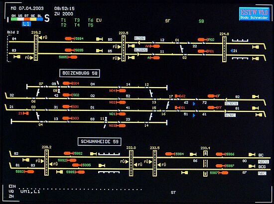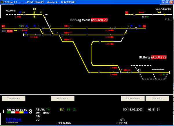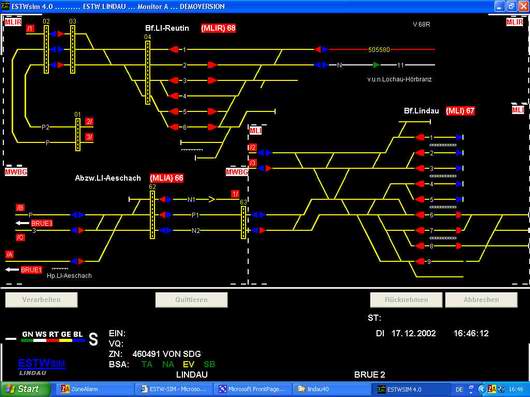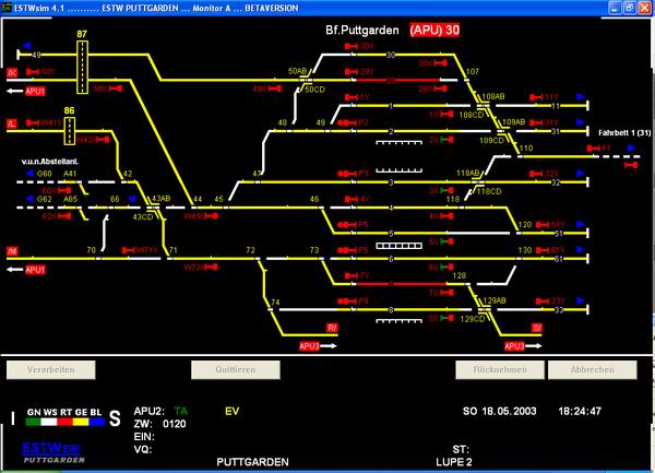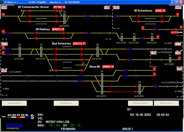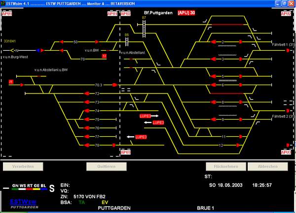 B1. Dieses Simulationsprogramm simuliert das ESTW Stellwerk 'Wittenberge' der