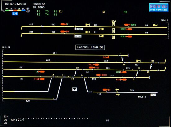 Alcatel ESTW, Simulation Hagenow Das ebenfalls aus dem Hause Bodo Schneider stammende Simulationsprogramm ESTW Hagenow umfasst 9 Lupen und 2 Bereichsübersichten. Es stellt den Betrieb von Schwanheide (aus Richtung Büchen/ Hamburg) bis Schwerin-Görries (in Richtung Schwerin Hbf) und Jassnitz (Richtung Ludwigslust) dar. Hagenow Land ist als Bahnhof selber ein sog. Trennungsbahnhof. Die Strecke ist für 230 km/h ausgelegt und hat eine dementsprechende Charakteristik. Der Zugverkehr findet Tag und Nacht statt und beschert der Simulation ein recht hohes Verkehrsaufkommen sowie ein sehr interessantes Betriebsgeschehen. Der Stellbereich ist recht groß und der Fdl hat sehr viel zu überwachen und muß den Verkehr möglichst reibungslos steuern und disponieren. Die Abzweigstellen und Ausweichmöglichkeiten stellen interessante Möglichkeiten dar, den Zugverkehr zu leiten und bei Störungen oder Unregelmässigkeiten entsprechende Maßnahmen einzuleiten. Das ESTW Hagenow besitzt also in erster Linie die Struktur eines reinen Streckenzentralstellwerkes ähnlich den Simulationen Neuenhagen oder auch Fehmarn.Info / Download: Dieses Programm ist nicht mehr offiziell erhältlich.
