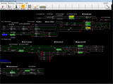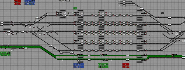 Das Simulationsprogramm Train Dispatcher ist ein international orientiertes Simulationsprogramm. Es ähnelt einem ESTW. Bei dieser Simulation ist es möglich verschiedenartige Track-Layouts zu laden. Zum Beispiel Stuttgart Hbf - Kornwestheim, Hannover - Berlin, aber auch Bahnhöfe Strecken aus Frankreich, USA, Canada,..... Die Auswahl an möglichen Track-Layouts ist sehr groß; in vielen Internetseiten und Foren werden ständig neue Layouts angeboten. Die Gleisansicht kann einmal als eine Art Lupe betrachtet und andererseits als Bereichsübersicht betrachtet und auch bedient werden. Die Bedienung ist sehr einfach per Maus durchzuführen. Zur Bedienung muß man jedoch sagen, das die Bedienung anders als bei deutschen Stellwerkssimulationen nicht mit Fahrstraßen erfolgt, sondern man stellt zuerst die einzelnen Weichen, und dann die dazugehörenden Signale. Erst dann läuft ein Fahrweg ein und die Weichen sind verriegelt. Ein Rückstellen der auf Fahrt gesetzten Signale ist jederzeit möglich und durch diesen Vorgang wird gleichzeitig die Fahrstraße wieder zurückgenommen. Der Umfang dieser Simulation bzw. der Stellbereich der Track-Layouts kann sehr groß sein, daher kann man für viele Signale Selbstblock- bzw. Zentralblock Funktionen setzen. Eine weitere Aufgabe besteht darin, bei Gleissperrungen und Baustellen ( Work-Permitts ) die Zugfahrten umzuleiten bzw. umzudisponieren. Für eigene Track-Layouts steht ein zusätzlich zu erwerbendes Programm bereit (Track-Builder) mit dessen Hilfe man nach eigenen Wünschen Gleispläne erstellen kann. Anschließend werden diese dann compiliert und auf Simulationsfähigkeit geprüft. Info / Download: http://www.softrail.com/railsof.html